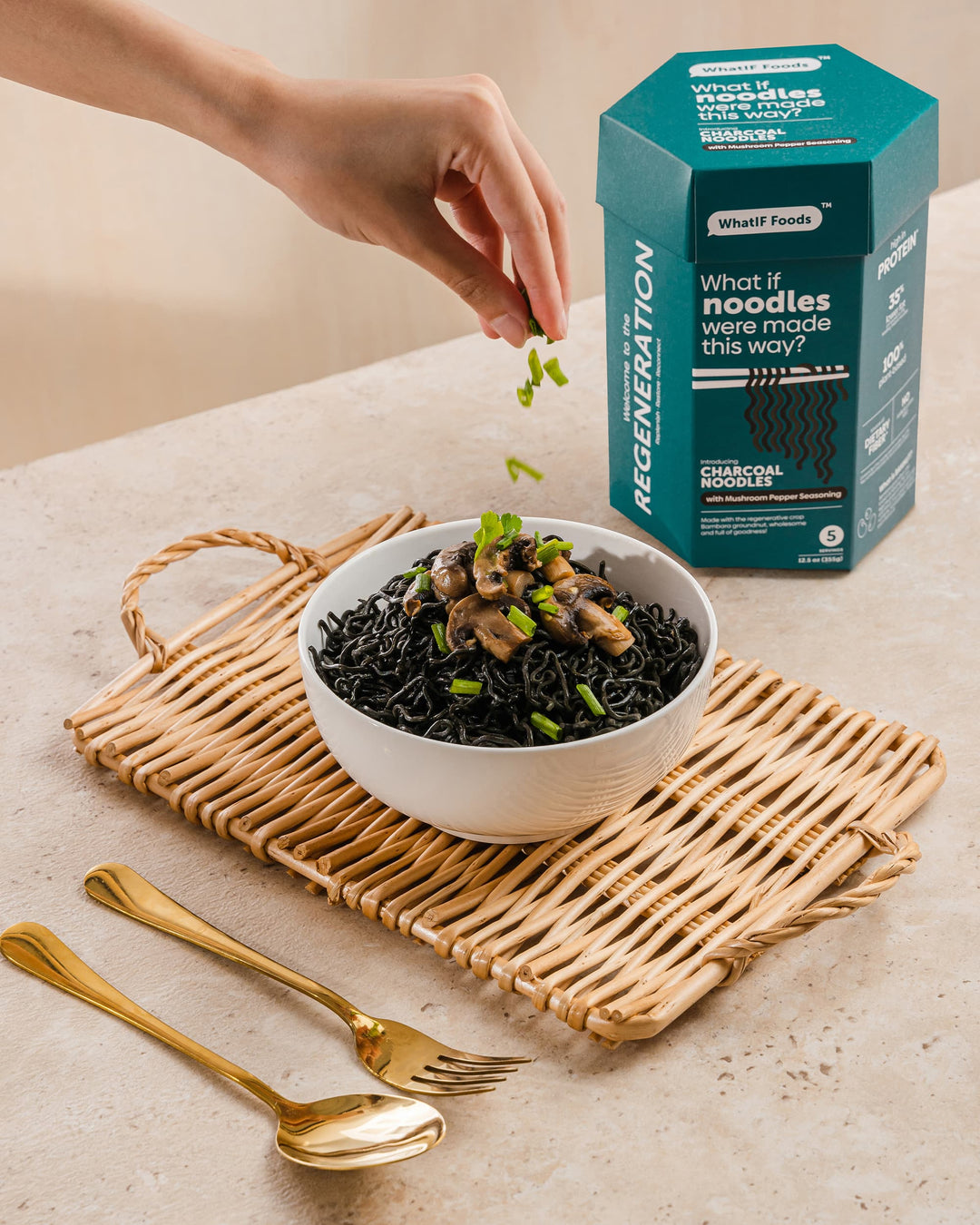 1x BAMnut Noodles with Sweet Hot Seasoning 1x Moringa Noodles with Sesame Garlic Seasoning 1x Charcoal Noodles with 'Shroom Seasoning 1x Pumpkin Noodles with Cheeky Curry Seasoning